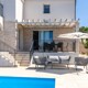 Kuća se sastoji od prizemlja i prvog kata. Na prvom katu nalazi se dnevni boravak, kuhinja, wc i soba. Iz dnevnog boravka i sobe pruža se pogled na bazen. Na drugom katu nalaze se tri sobe i dvije kupaone.