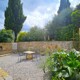 Okućnica površine 221 m² ograđena je kamenim zidom i pruža potpunu privatnost.