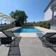 Na prodaju je ovaj lijepo i moderno uređeni stan površine 85 m2 u prizemlju kuće. Sastoji od otvorenog prostora koji dijele dnevni boravak sa kuhinjom i blagovaonicom i izlazom na terasu. U nastavku se nalaze dvije spavaće sobe sa izlazom na prostranu terasu sa pogledom na zelenilo te kupaonica i gostinjski wc. Uz stan dolazi vrt na korištenje sa bazenom te natkriveno parking mjesto.