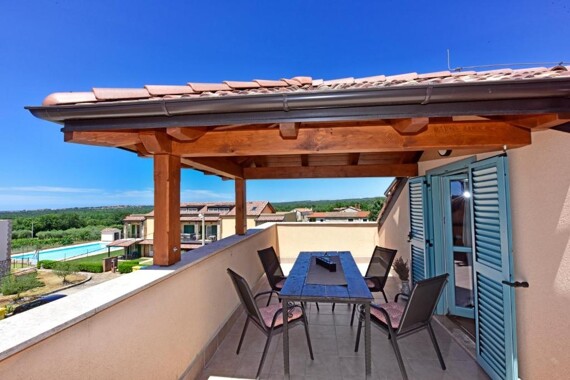 Terasa ima 25 m2 i s nje se pruža pogled na zelenilo i more.