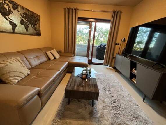 Nekretnina je iznimno kvalitetna te se sastoji od dnevnog boravka, kompletno novo opremljene kuhinje i blagovaonice, dvije spavaće sobe, kupaonice, balkona i spremišta.